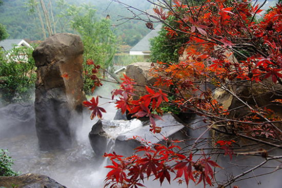 温泉城内随处可以见原生态的火山石路、小桥流水、亭台轩榭,瀑布与自然生态完美的结合,体现在繁忙的都市生活中,休闲陶心的生活意境;您无论站在温泉城哪个点上,眼前总是一幅完美的图画。