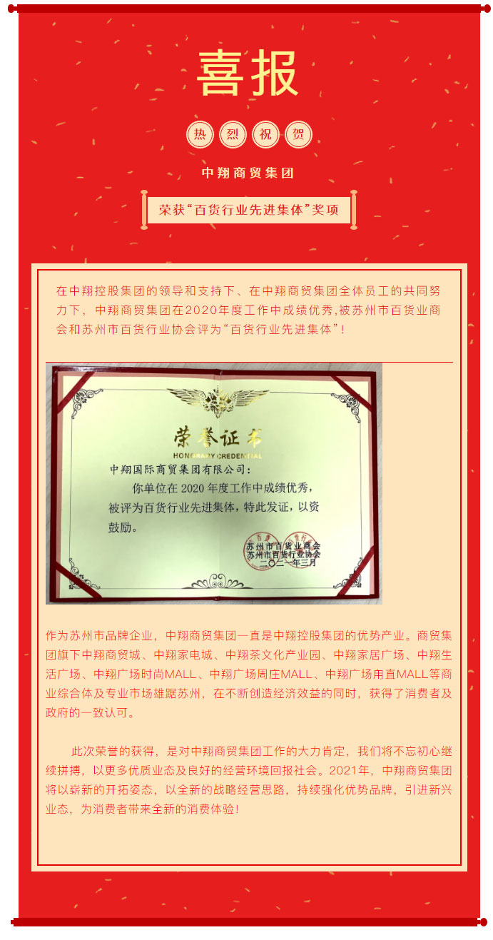 实力打Call!中翔商贸集团荣获“百货行业先进集体”称号