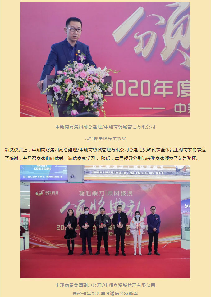 中翔商贸城商业管理有限公司 2020年度优秀商家、诚信商家颁奖典礼隆重举行!